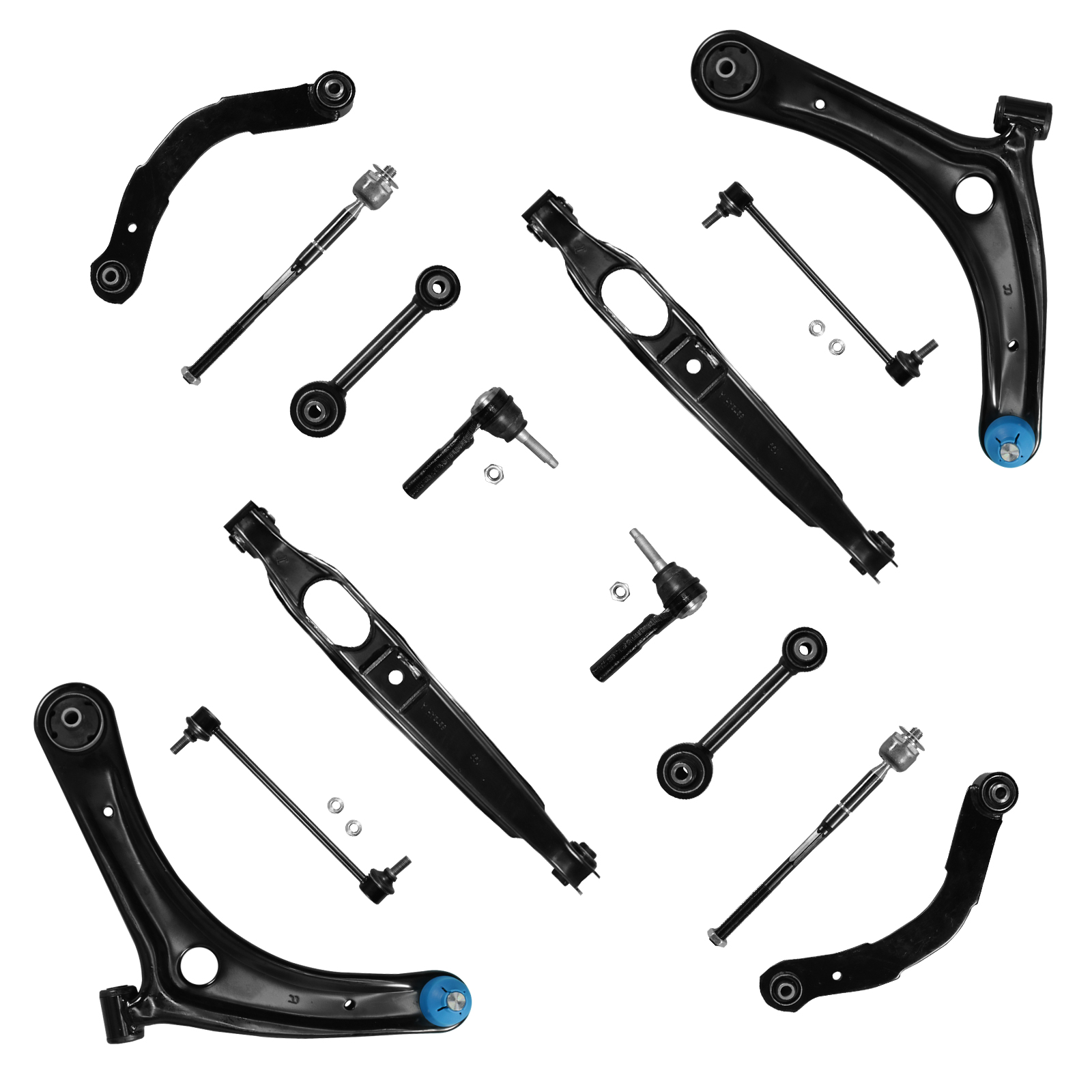 1x Front Lower Control Arm w/ Ball Joint Assembly - Driver Side - K620066 1x Front Lower Control Arm w/ Ball Joint Assembly - Passenger Side - K620065 2x Rear Upper Control Arm - K641281 2x Rear Forward Lower Control Arm / Lateral Toe Arms - K641226 2x Rear Rearward Lower Control Arm - MS251007 2x Front Sway Bar End Link - K750385 2x Front Outer Tie Rod End - ES800408 2x Front Inner Tie Rod Ends - EV80645 |