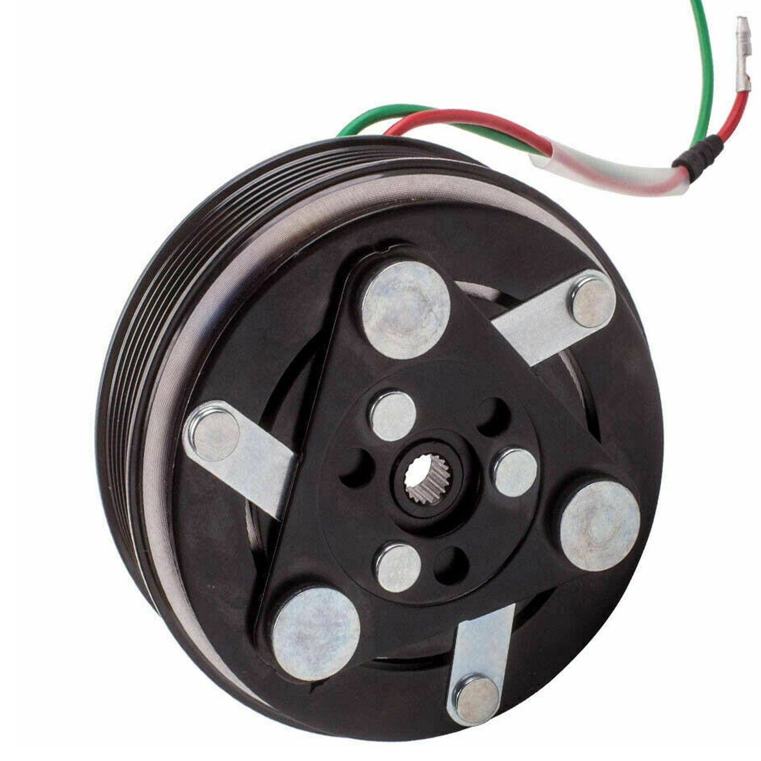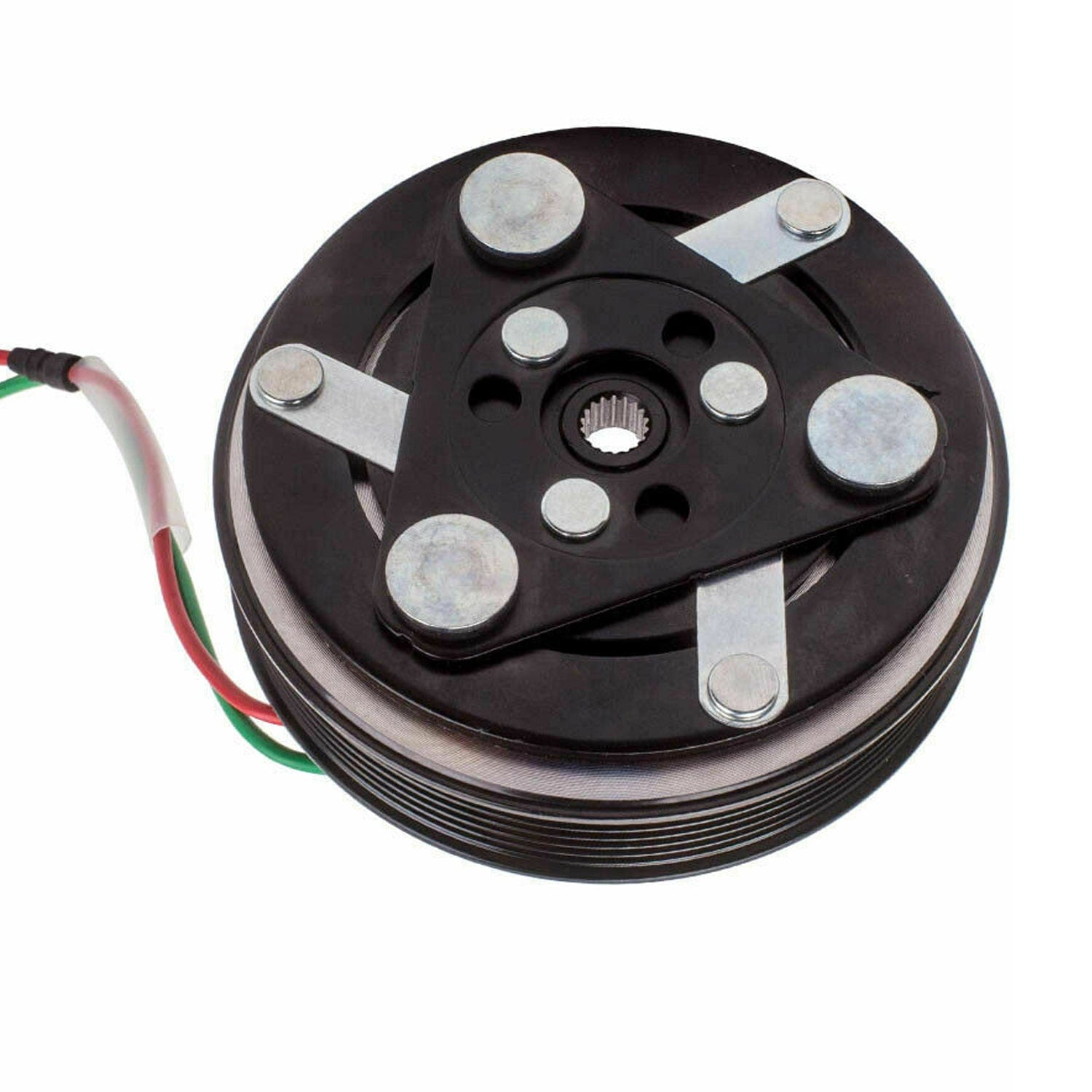 The compressor clutch is an electromagnet that engages the clutch plate with the pulley when energized. This connection transfers power from the drive belt to the compressor shaft, enabling the AC system operation.