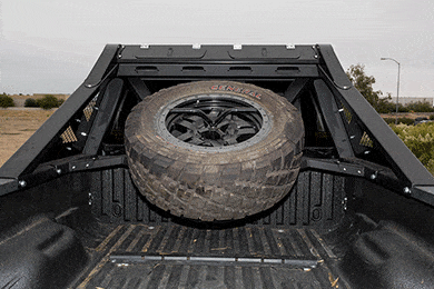 Starting with the premium steel HoneyBadger Chase Base Rack you can customize your off-roader with just what you need to tackle even the toughest terrain. Adding the bolt-on tire carrier lets you load a spare tire up to 40¡± in your bed leaving plenty of room for storage underneath.