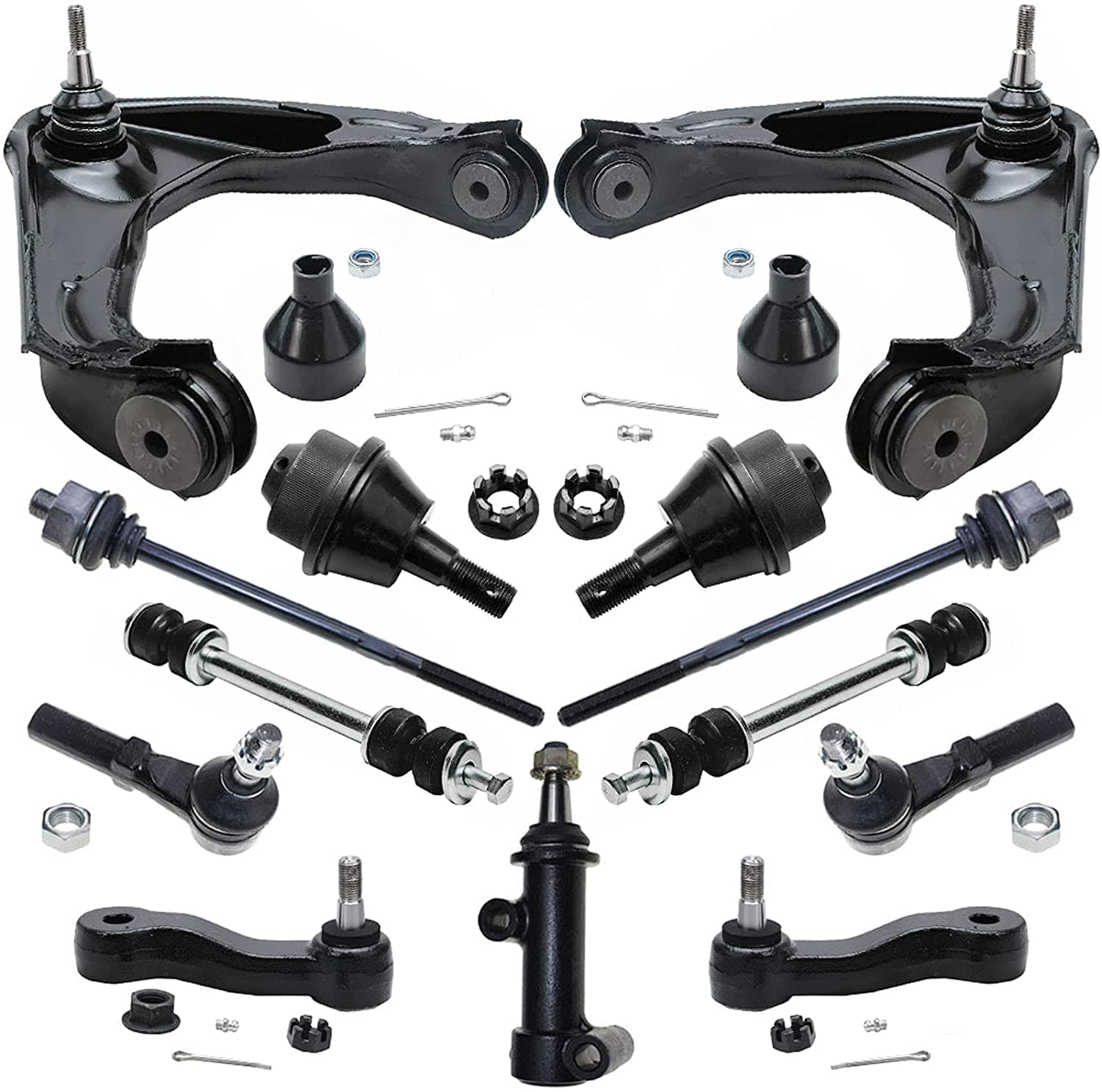 MotorbyMotor 13pc Front Upper and Lower Control Arm Suspension Kit Ball Joint w/Tie Rods Sway Bar Links Fits for Chevy Avalanche Suburban 2500, Silverado 1500 2500 3500,GMC Sierra 1500 2500 3500